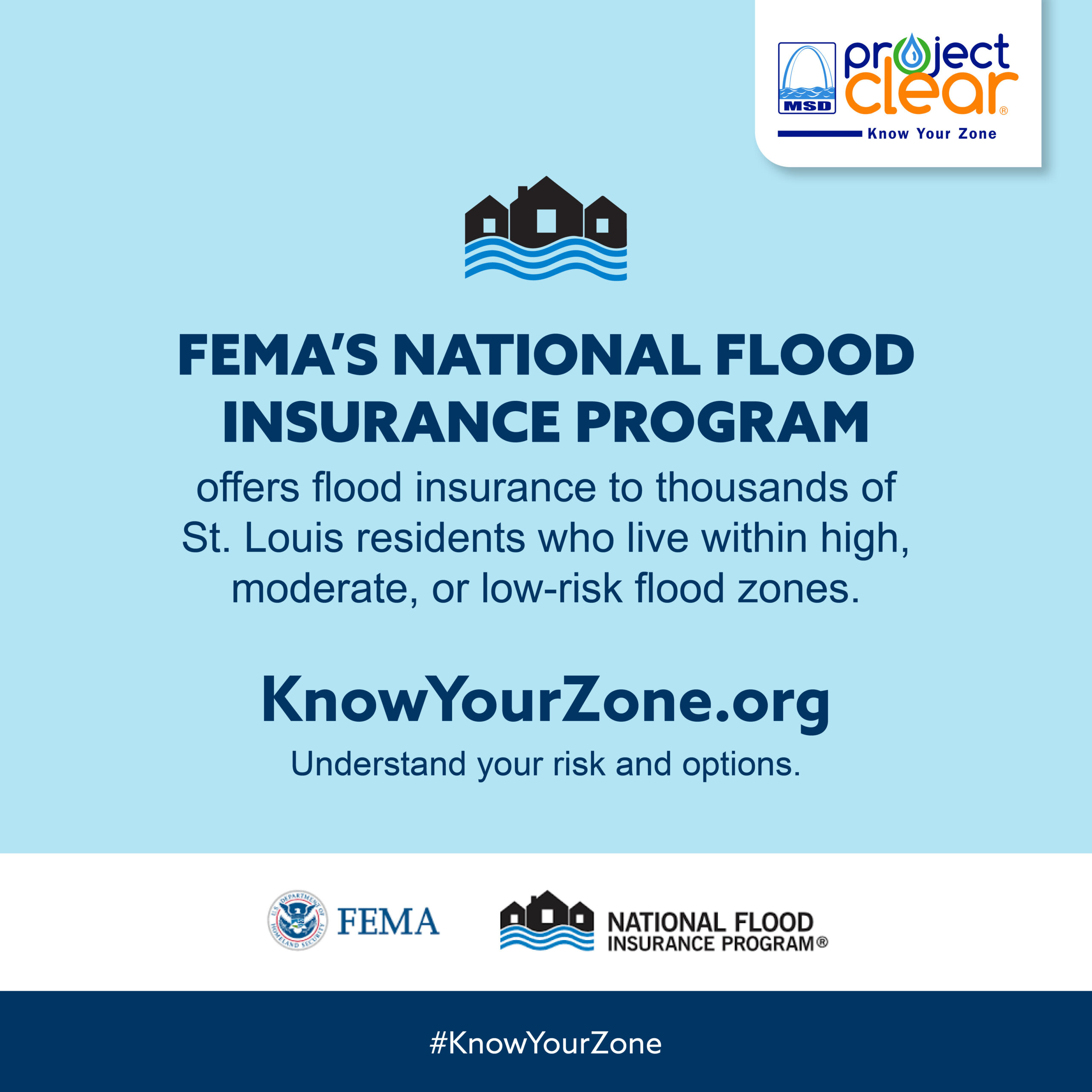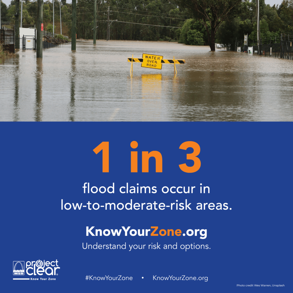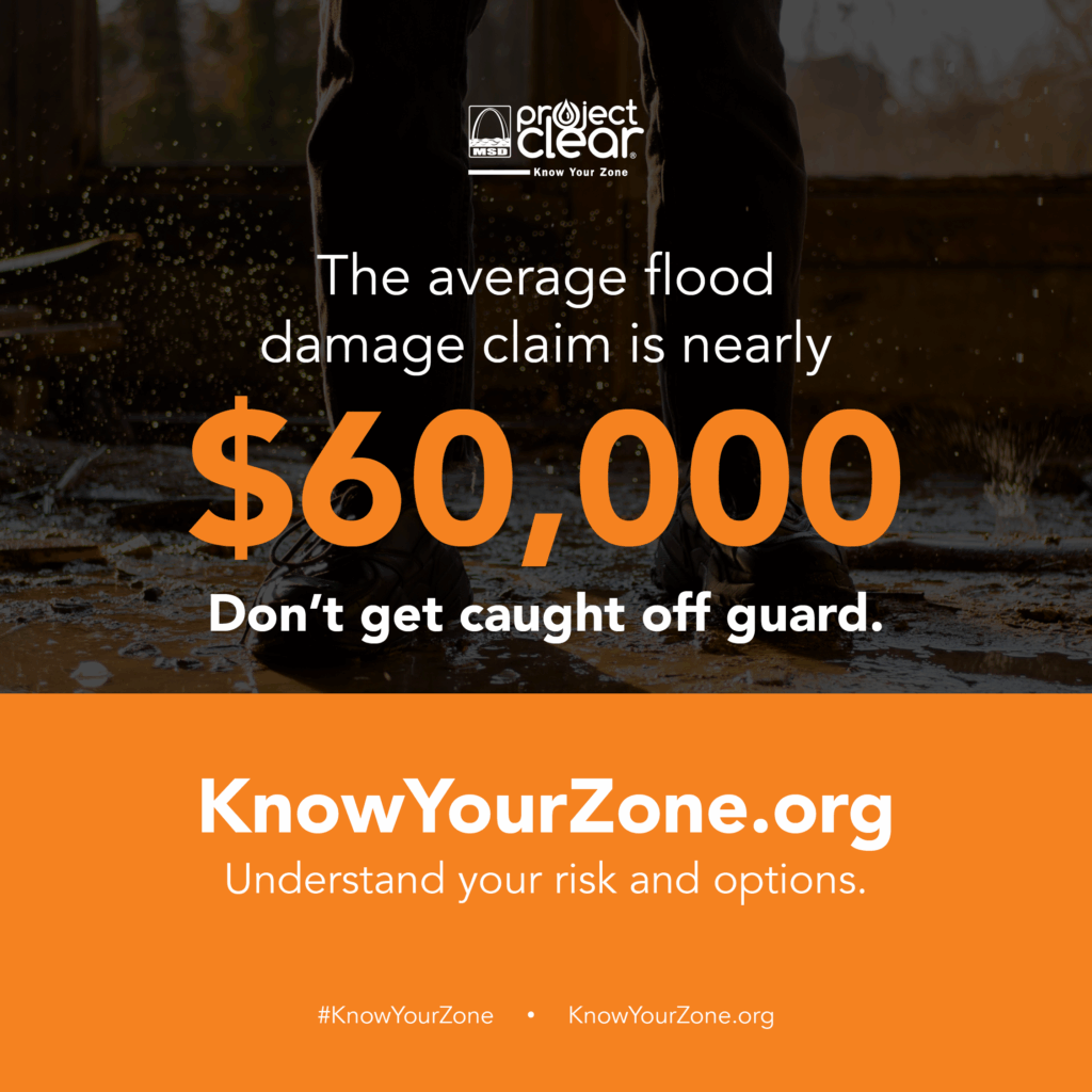 - We’re partnering with @MSDProjectClear to help you understand your flood risk and make informed choices about flood insurance. Did you know that regular homeowners or renters insurance doesn’t cover flood damage? And the average flood claim is nearly $60,000? Find out more at KnowYourZone.org.